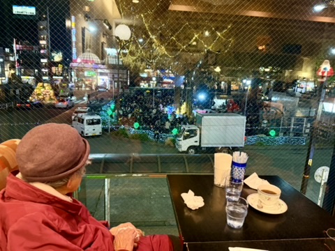 歯医者さんは駅前ロータリーに面していて、治療が終わると、外から演奏が聞こえてきた。ペンライトの灯りを手に、ツリーの周りに人々が集まっている。