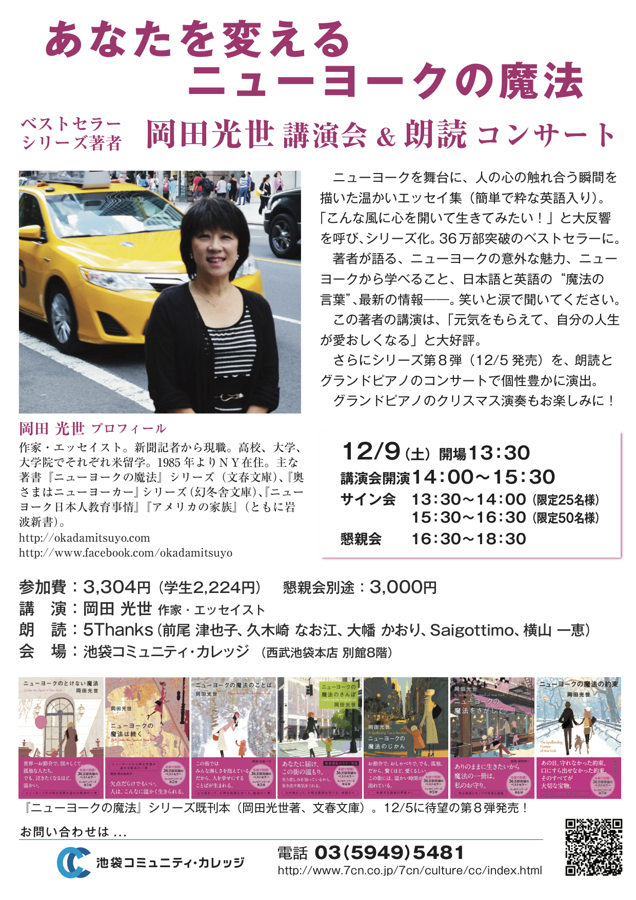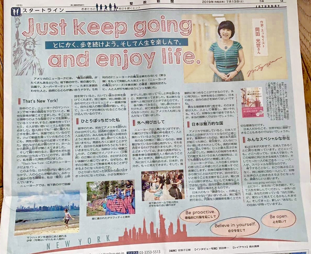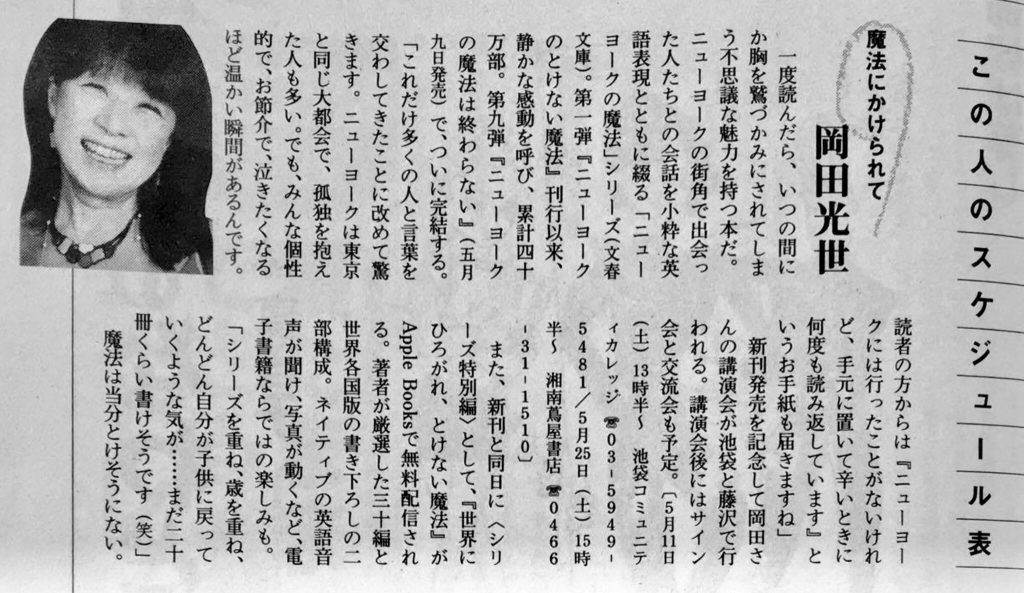 新刊刊行記念講演会 各紙で話題の本「ニューヨークの魔法」シリーズ の岡田光世が贈る あなたを変える”ニューヨークの魔法” ~孤独な大都会なのに温かいNY。こんなふうに生きたい~ あなたの人生が変わります!
