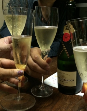 明日は新刊の発売日。ダブルのお祝いに、今夜は白ワインで乾杯!